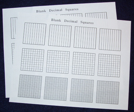 | Materials: Each person will need a sheet of Blank Decimal Squares for tenths hundredths and thousandths. | ||||||||||||||||||